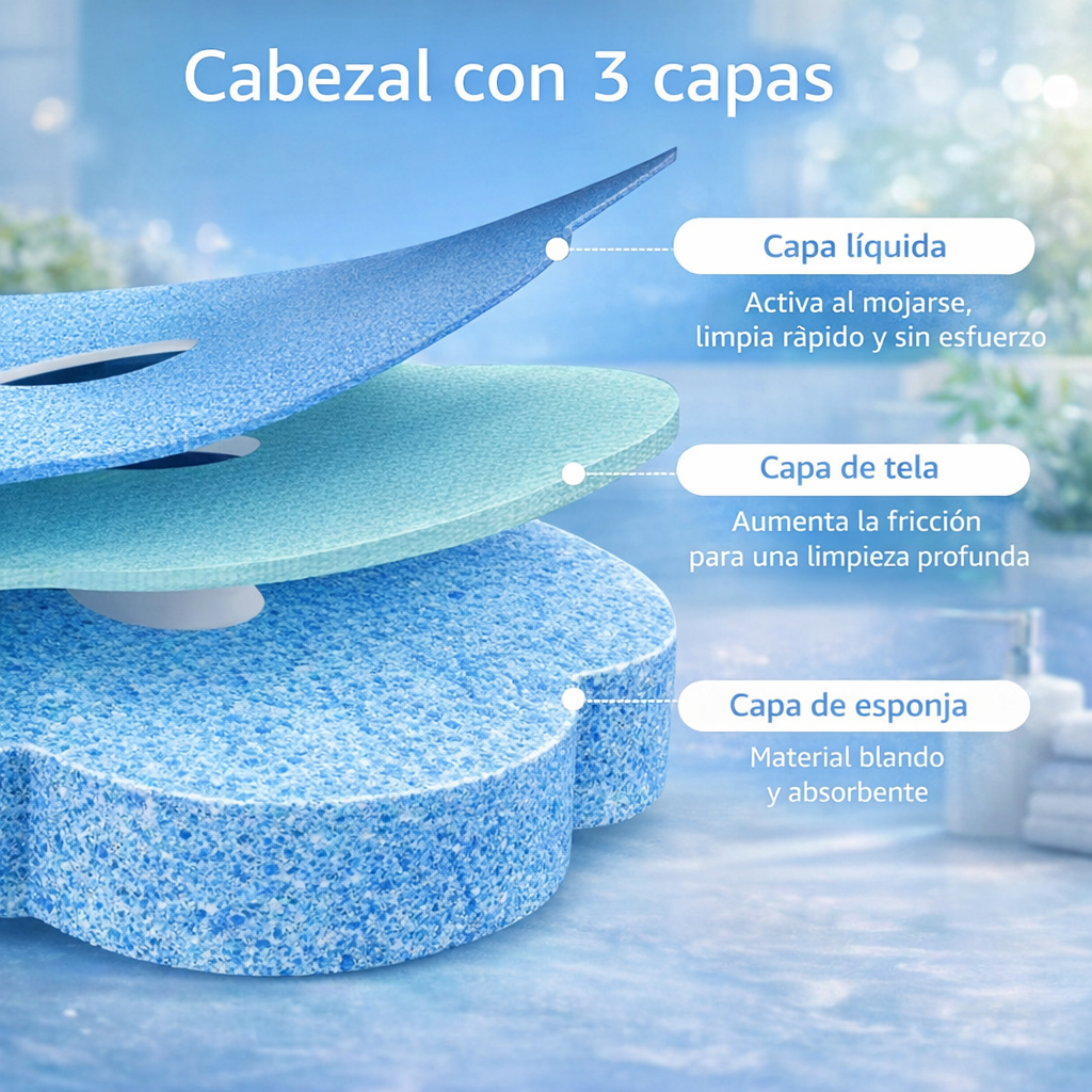Formato familiar o intensivo con mayor duración. Ideal para mantener el baño limpio de forma rápida, sin cepillos tradicionales ni cabezales reutilizables. Compatible exclusivamente con el mango OLYMPI0 Clean.
