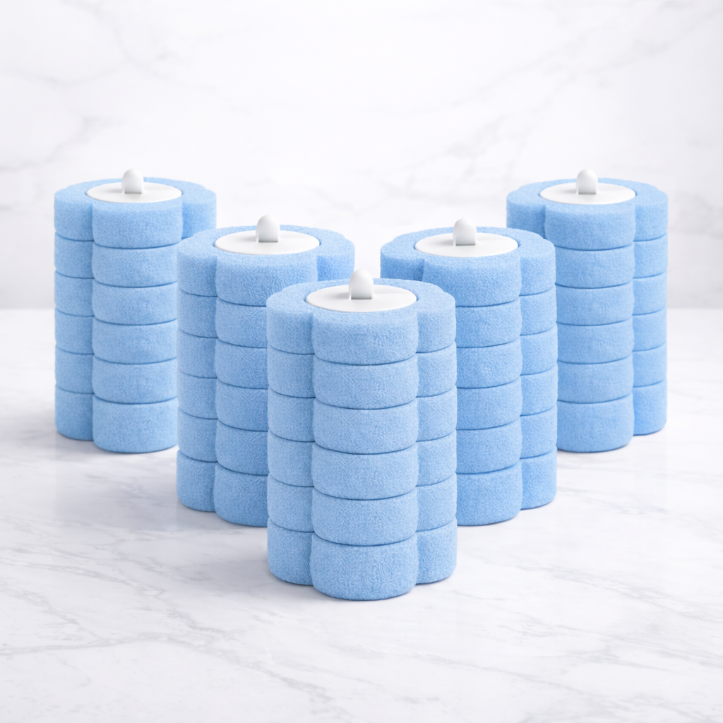 Pack ahorro de 30 cabezales desechables compatibles con el sistema OLYMPI0 Clean. Disponible en tres variantes de aroma: Océano, Lavanda y Limón. Diseñados para limpieza profunda del inodoro con máxima higiene y cero contacto. Cada cabezal de espuma azul es de un solo uso y se desecha tras limpiar, evitando la acumulación de gérmenes.