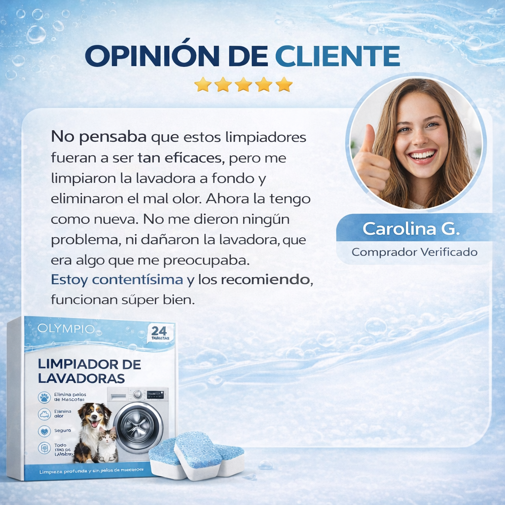 OLYMPIO limpia lo que no puedes ver — el corazón mismo de tu lavadora.